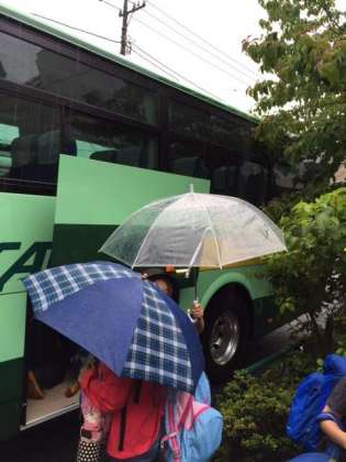 あいにくの雨ですが、雨だからこそ経験できることもたくさんあることでしょう。荷物も手際よく積み込み、予定通り元気いっぱい、行ってきます!