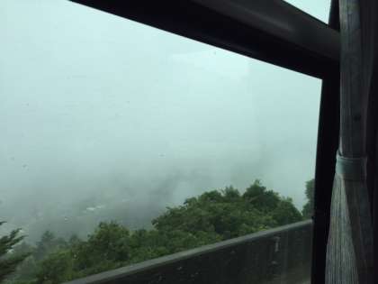 濃霧ですが、バスの中はみんな元気いっぱいに過ごしています。もうすぐ赤城です。
