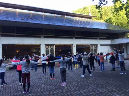 今朝は晴れています。朝の会では元気にラジオ体操をしました。