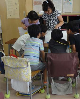 2年生が調べた「生きもの」について、2年1組は1年1組に、2年2組は1年2組に、2年3組は1年3組に発表しました。2年生は、自分が興味をもった「生きもの」でグループを作り、協力して図書資料等で調べました。調べた中から、1年生に伝えたいことを選び、どのようにしたら1年生が興味をもって聞いてくれるか、発表の仕方もグループで話し合って工夫し、準備しました。紙芝居やクイズ、説明など様々な工夫が見られました。本番の前には練習も積みました。1年生も熱心に聞いて、聞き終わると「振り返り」をメモしました。交流の前には、話し方や聞き方もしっかりと学びました。この学習でも1年生と2年生の「つながり」が見られました。