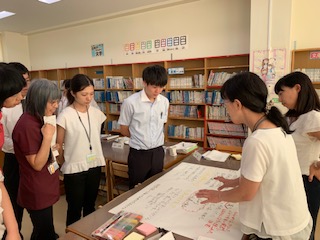 6年2組で「まほう使いのチョコレートケーキ」を学習材に研究授業を行い、終了後には授業について、教職員で研究協議を行いました
