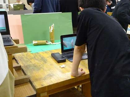 1月15日に5年生で図工の研究授業が行われました。展覧会でふれた「竹」を使い、ここから生まれてくるものをアニメーションで表していきます。