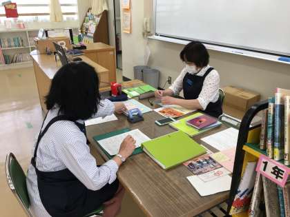 学校図書室には、司書(ししょ)の先生が2人いらっしゃいます。