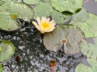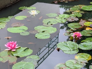 学校のうらには、いけがあります。いまは、写真のようにスイレンの花がきれいにさいています。