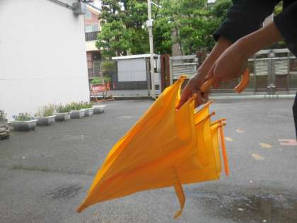 あめが ふって しまったので、ぬれて しまったひとも いて、たいへんでしたね。かさを、じょうずに とじている ひとが なんにんも いました。すばらしいです。4がつに だした ちゃれんじカードにも、でて いましたね!