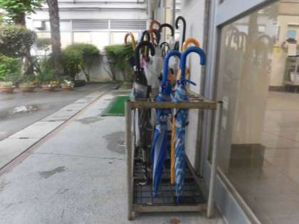 かさたてに いれる ときには、まっすぐ いれましょう。
