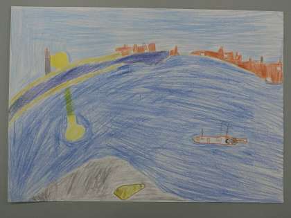 ひまわりの絵が有名なゴッホの絵です。星空がきれいな河の風景を素敵な構図で表現してくれました。船の上で夜空をのんびり楽しんでる様子がとても素敵です。美しい物語がずっと続いていきそう…な作品ですね。