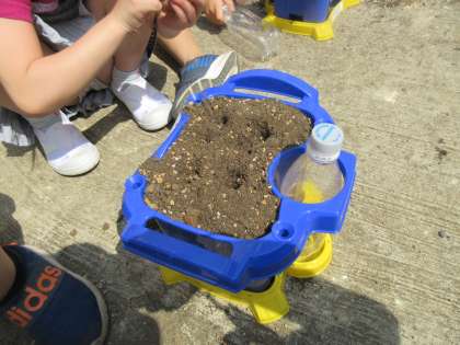 げつようびは、さんすうの がくしゅうをしましたね。「どちらが おおいか」せんをつないで、たしかめる がくしゅうを しました。せいかつかでは、あさがおの たねをまきましたね。つちに ひりょうを まぜて、たねを ひとつひとつ ていねいに まきました。