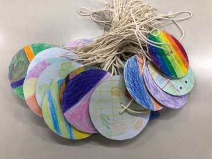 プレゼント作りは5月の家庭学習で取り組みました。ご家庭でのご協力ありがとうございました。並べてみると、彩り豊かでとてもきれいです!一生懸命取り組んだことが伝わってきます。