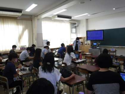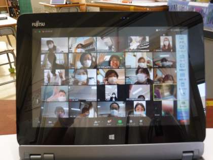 サマースクール後は、教職員の研修時間でした。本日は、本校ICT担当教員を講師に、ZOOMによるオンライン授業の研修を行いました。今後、登校ができなくなった状況に備えて、学校と子どもたち、担任と子どもたちが繋がる手段として、また、関係づくりや健康観察、学習状態の確認等を行うために、zoomを活用していくことを考えています。