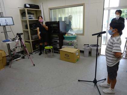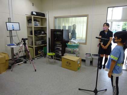 始業式はテレビ放送で行いました。3年生の代表児童が、夏休みの思い出や2学期に頑張りたいことをスピーチしました。話すことをしっかりと覚え、堂々とスピーチすることができました。