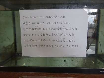 みんなの大好きだったウーパールーパーのエリザベスが、今朝、生涯を終えました。