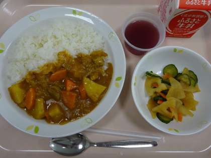 2学期初めての給食でした。今日のメニューはみんなの大好きなカレーライス。