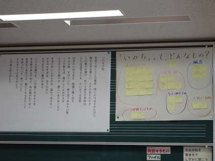 6年生は、「いのち」の曲を聴き、その歌詞から、それぞれが感じた、考えた「いのち」について思いを広げていきました。これは、創立80周年記念式典での6年生の発表としてつなげていく予定です。残念ながら、式場で歌うことはできなので、動画撮影等工夫していきます。