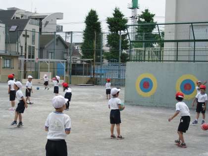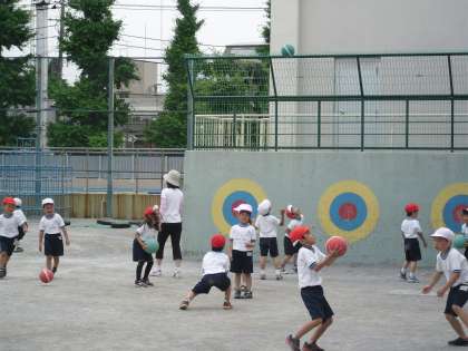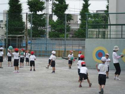 1年生がボールを使ってボールを投げる、捕る、つくなどの学習をしていました。運動会を終えて1年生は自信を持って取り組んでいました。