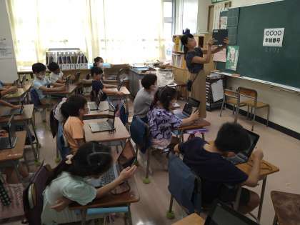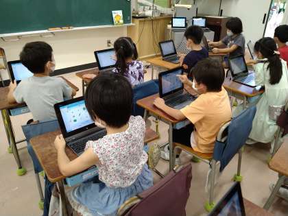 どちらのクラスでも、電源が入ったときの盛り上がりや、絵を描いたときの歓声は、とても楽しいものでした。おうちで慣れている子もいるのかもしれませんが、学校でパソコンを使う、という体験がとても楽しかったようです。「毎週、金曜日にパソコンできるの?」「家に帰ったら練習してみたいな」と、口々に話していました。