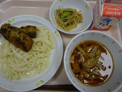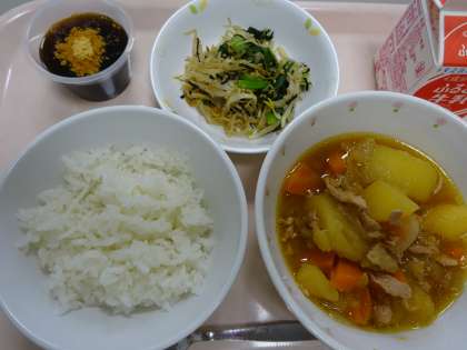 1階の給食室前には、給食サンプルが置かれます。「今日の給食は何かな?」楽しみにしている声がよく聞かれます。