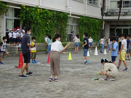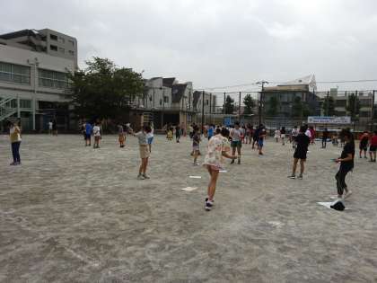 今日は高学年のなわとび検定の日でした。高学年の多くの児童が検定を受けたり、練習に取り組んだりしていました。