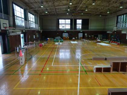 会場は写真のようなイメージです。明日は、ここに子どもたちの笑顔があふれることでしょう。