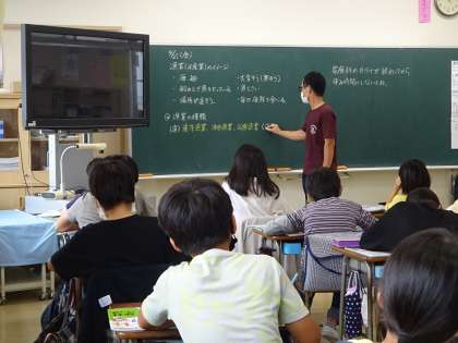 5年生の社会科では水産業の学習を進めています。課題に対して、教科書や資料集を見ながら分かったことをノートにまとめ、発表しながら学びを深めています。学んでいく中で、当初にもっていた水産業のイメージと違い、現在の漁業のハイテク化に驚く子どもたちでした。