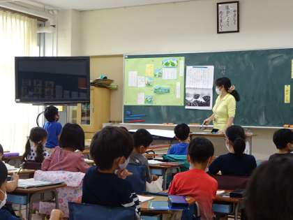 「やくそく」を読みました。誰が何を言ったか確かめ、自分が気になるところ(すてきだな、いいな、すきだな、おきにいり)を考えて、教科書に付箋を貼りました。全体で発表し、みんなが興味をもったところを共有し合いました。