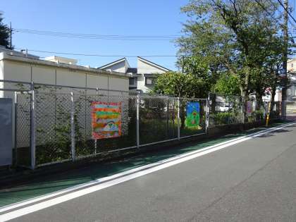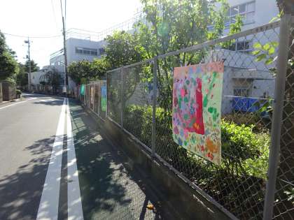 3年生の図工科では、創立80周年を祝って、学校の外を通った人が「わあ。」となる絵を作成しました。でき上がって学校周りのフェンスに掲示しています。グループでイメージを膨らませ、協力してつくり上げました。子どもたちの創立80周年のお祝いを喜ぶ気持ちがあふれています。