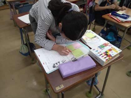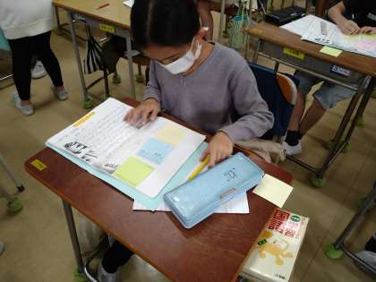 ごんになりきってその日の出来事を書き、それを読んだ友だちから感想をもらって、とてもうれしそうでした。ごんの気持ちが変わっていったこと、そしてごんの行動が兵十の気持ちを変えたことを、じっくりゆっくり読み取りました。