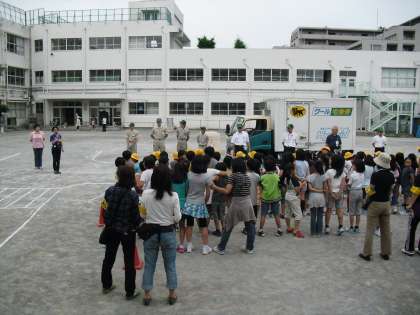 15日の午後PTA郊外委員会による交通安全教室が開催されました。運送会社の全面協力によりトラックの運転席からの死角など低学年を中心に学習しました。