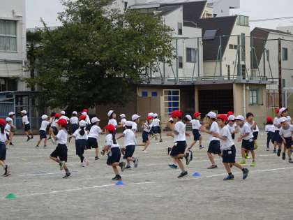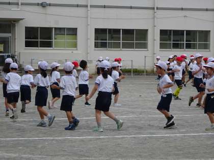 今日は、校庭に出て、隊形移動の練習をしました。踊るのが楽しくてたまらない様子が伝わってきました。2年生は、1年生のお手本としても頑張っています。