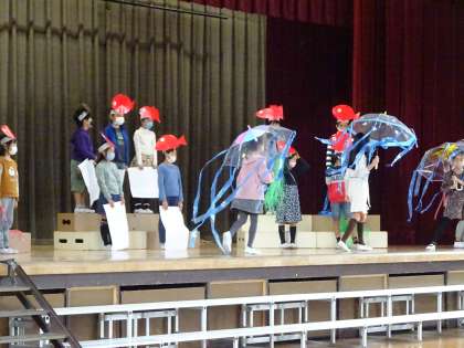 2年生は、国語で学習した「スイミー」のげきに取り組んでいます。今日は場面ごとに分けて動画撮影をしました。