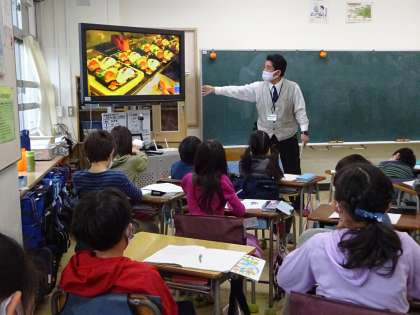 今日は、近隣のスーパーマーケットの店長さんが駒繋小学校に来てくださいました。お店の工夫のお話や子どもたちの質問に答えてくださいました。