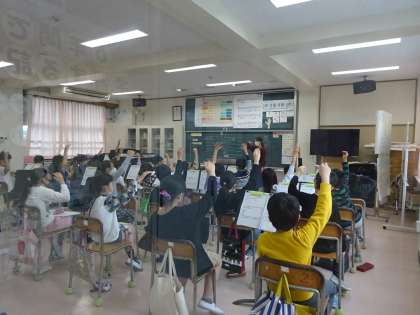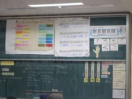 音楽で3年生は、曲を聴いて感じたことを発表したり、旋律の特徴に合った歌い方を覚えたりしています。4年生は、曲や演奏のよさに気付いて聴いたり、旋律の特徴に合った歌い方を覚えたりしています。