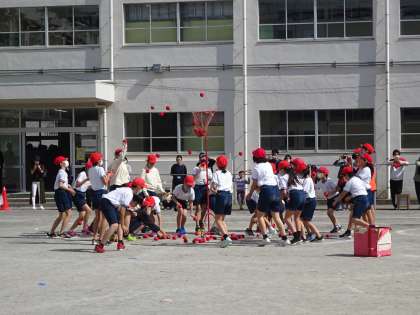 赤も白も接戦の玉入れでした。