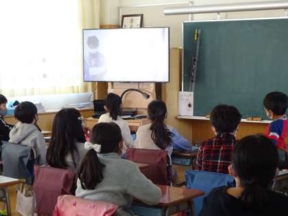 今日の朝は体育集会でした。まだ全校児童が集まる集会はできないので、今日は、運動委員会の児童がサッカーについて調べたことをテレビ放送で発表しました。