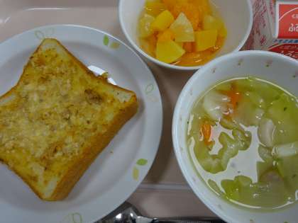 本日の献立 ツナトースト 牛乳 ポトフ フルーツポンチ