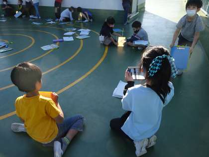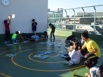 久しぶりの快晴。屋上で光の実験をしました。温度の変化を鏡の数と合わせて予想し、光を集めるほど暖かく、明るくなることに気が付きました。