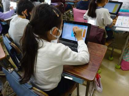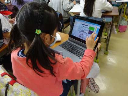 3年生がことわざの学習をし、自分たちでもことわざを調べました。タブレットを活用して辞典をつくっています。ローマ字の学習を生かして、ローマ字入力にも挑戦しています。