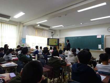 講師をお招きして「ネットリテラシー」を学びました。インターネットはとても便利ですが、使い方を間違えると大きなトラブルにつながることがあります。「トークアプリの仕組み」や「インターネットの向こう側」等を知ることで、情報モラルを学び、安全にインターネットを活用することを考えました。子どもたちからは、「すごく勉強になった」との声が上がりました。