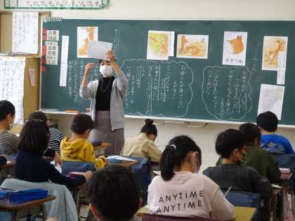 「きつねとぶどう」の学習材を使って、親が子を思う無私の愛情に気づき、家族に感謝しようとする心情を育てることをねらいに学習をしました。
