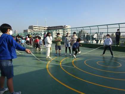 来週よりなわとび週間が始まります。今年度は各学級、大なわとびに取り組むことになりました。今日は6年生が1年生に跳び方のコツを教えたり、縄回しを手伝ったりしました。優しく教えてくれる上級生に、「楽しかった!!」と何人もの1年生が報告に来てくれました。