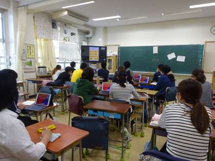 一人一台タブレット配布に備えて、教員研修を行いました。来週より6年生から配布されます。