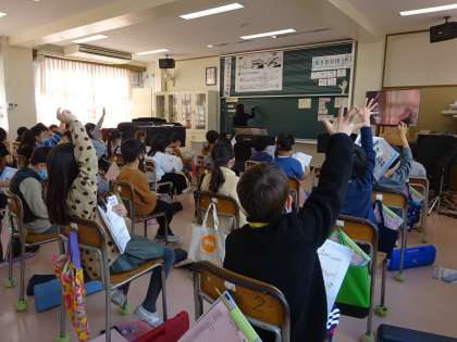 「かねがなる」「トルコこうしんきょく」を学んでいます。今日は、音楽室へ行きました。「かねがなる」は初めて聴きました。今までの学習してきている曲と比べながら、新しい曲の特徴も考えました。