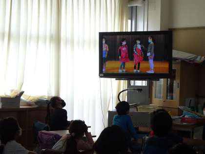 感染症の関係で、学芸会はできませんでした。その代わりに、10分間程度の出し物を各学年で考え、動画撮影をしたものを本日「駒繋シアター」と称して、学級で視聴しました。1年生の題は「1年生になったよ」です。
