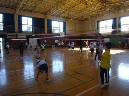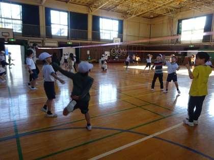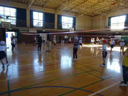 ネット型ゲームを進めています。ルールを理解して、友達と協力して楽しく取り組んでいます。
