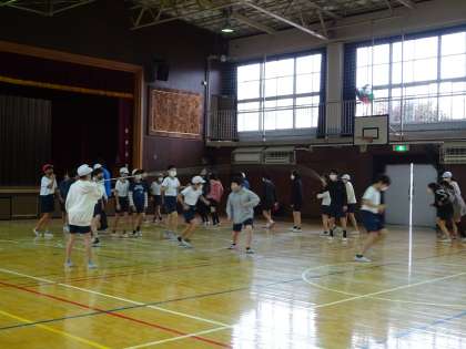 最後の時間は6年生が記録に挑戦しました。今日はあいにくの雨で、体育館での実施だったのでいつもの調子は出なかったかもしれません。それでも、縄の回し方、縄へ入る並び方や入り方、スピード感のあるリズミカルな跳び方、失敗しても励まし合う姿・・・。さすが最高学年の姿が見られてうれしく思いました。最後に集合して互いの成長を喜び合いました。