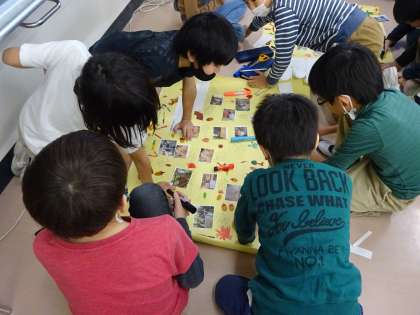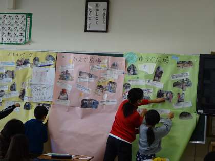 世田谷公園に行って分かったことやおすすめポイントを、グループに分かれて協力しながら模造紙にまとめました。