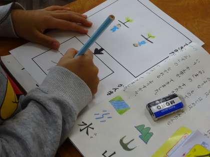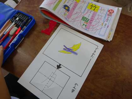1年生は、学習した漢字のでき方を知って、「かんじのできかたじてんをつくろう」の学習活動をしました。自分のお気に入りの漢字を1つ選んで、その漢字のでき方の絵を描き、そのでき方の絵が表わす漢字を下に書きました。裏には、その漢字を使った文を作って書きました。