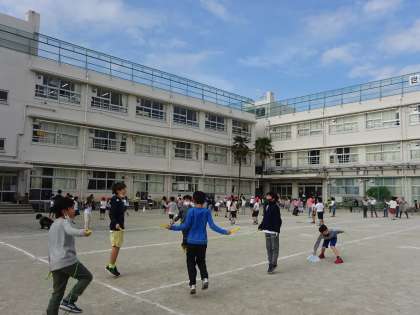 今日の中休みは低学年のなわとび検定の日でした。検定を受ける人、友達と練習に励む人、みんな元気に中休みを過ごしました。毎回、なわとび指導員、上級指導員の子どもたちが検定のお手伝いをしています。メンバーは職員室の廊下や正門側の昇降口に名前等、紹介されています。