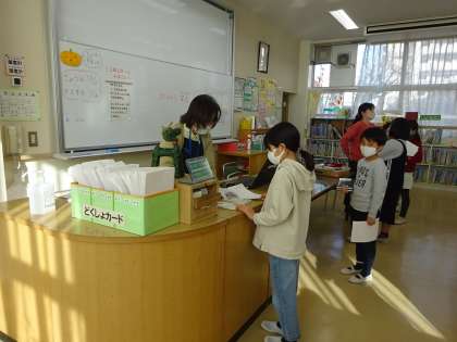 読んだ本のページ数を記録しています。「読書貯金」として記録です。「こんなに読んでいます!」「この本はシリーズになっていておもしろいです」「おばあちゃんもこの本が好きなんですよ」などなど、図書室を訪れた私に本の紹介もしてくれました。冬休みもたくさんの「本とも友達」になれるといいですね。写真は3年生です。