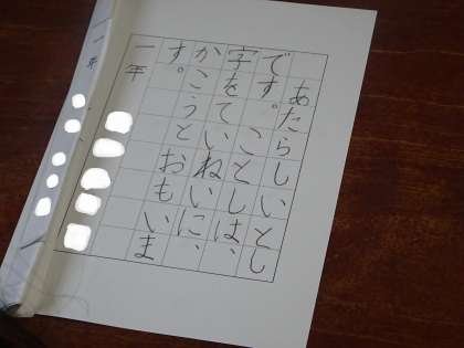 鉛筆を正しく持ち、お手本をじっくり見て清書をしました。冬休みもおうちで一生懸命に練習したのでしょう。どの子も一言もしゃべらず集中して書き上げました。